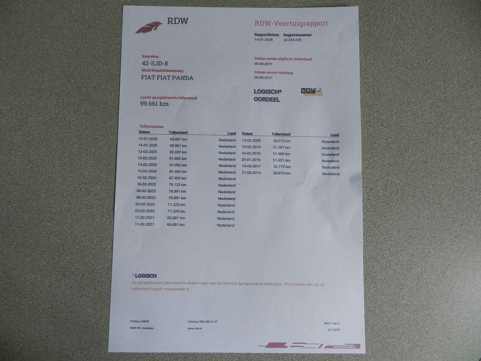 Bij al onze auto`s is een RDW voertuig (teller) rapport (nationale autopas) aanwezig.