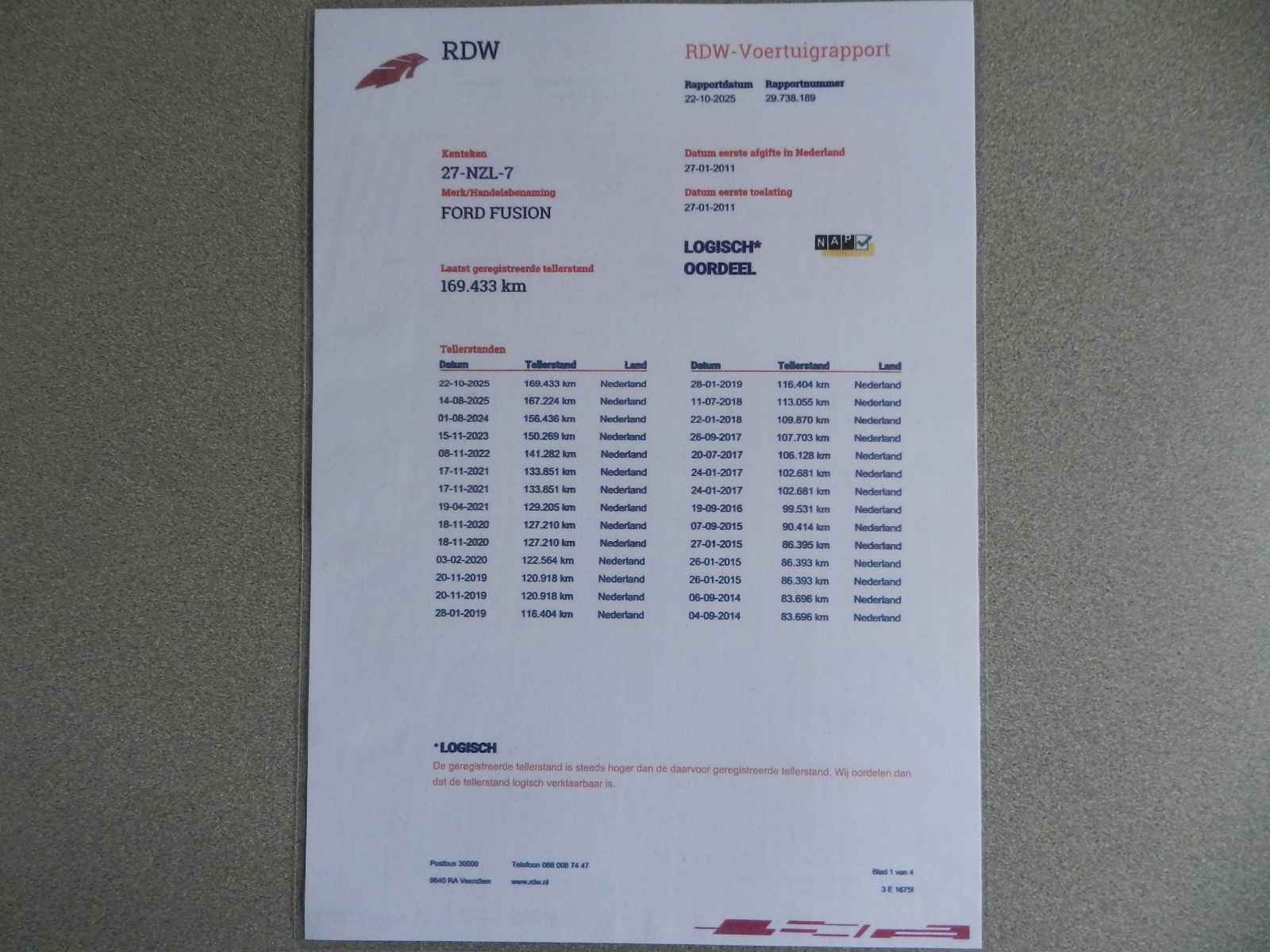 Bij al onze auto`s is een RDW voertuig (teller) rapport (nationale autopas) aanwezig.