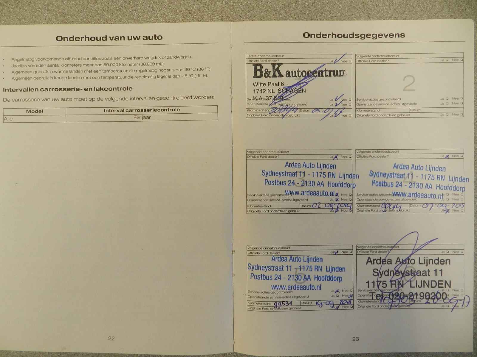 En bij de meeste auto's zijn de onderhoud boekjes aanwezig en te inzage.
