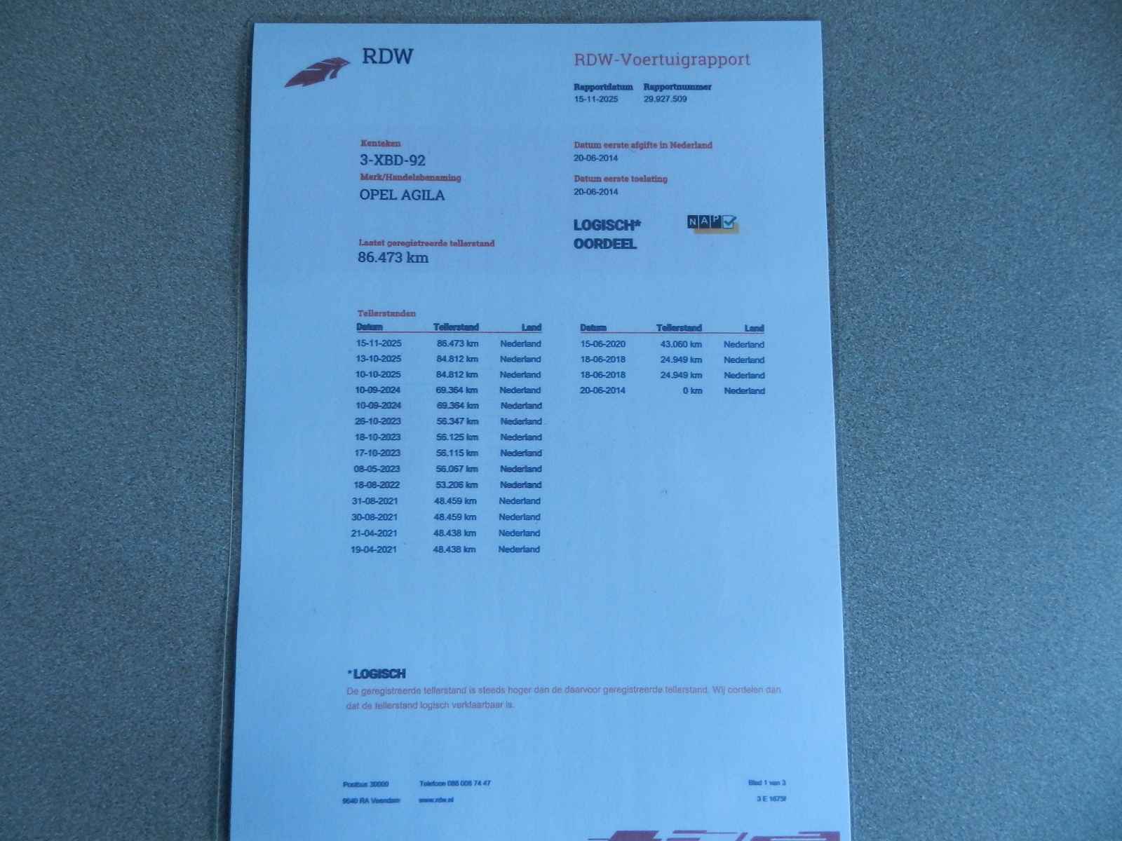 Bij al onze auto`s is een RDW voertuig (teller) rapport (nationale autopas) aanwezig.