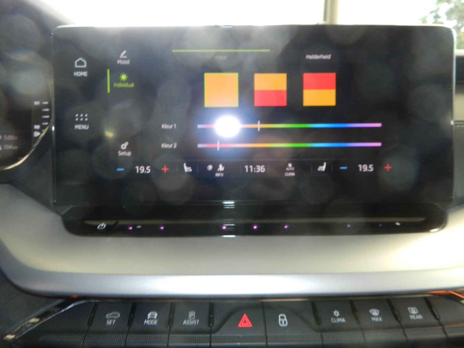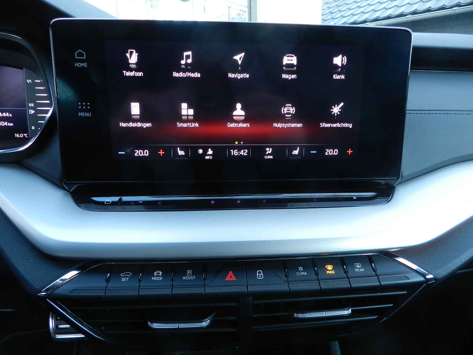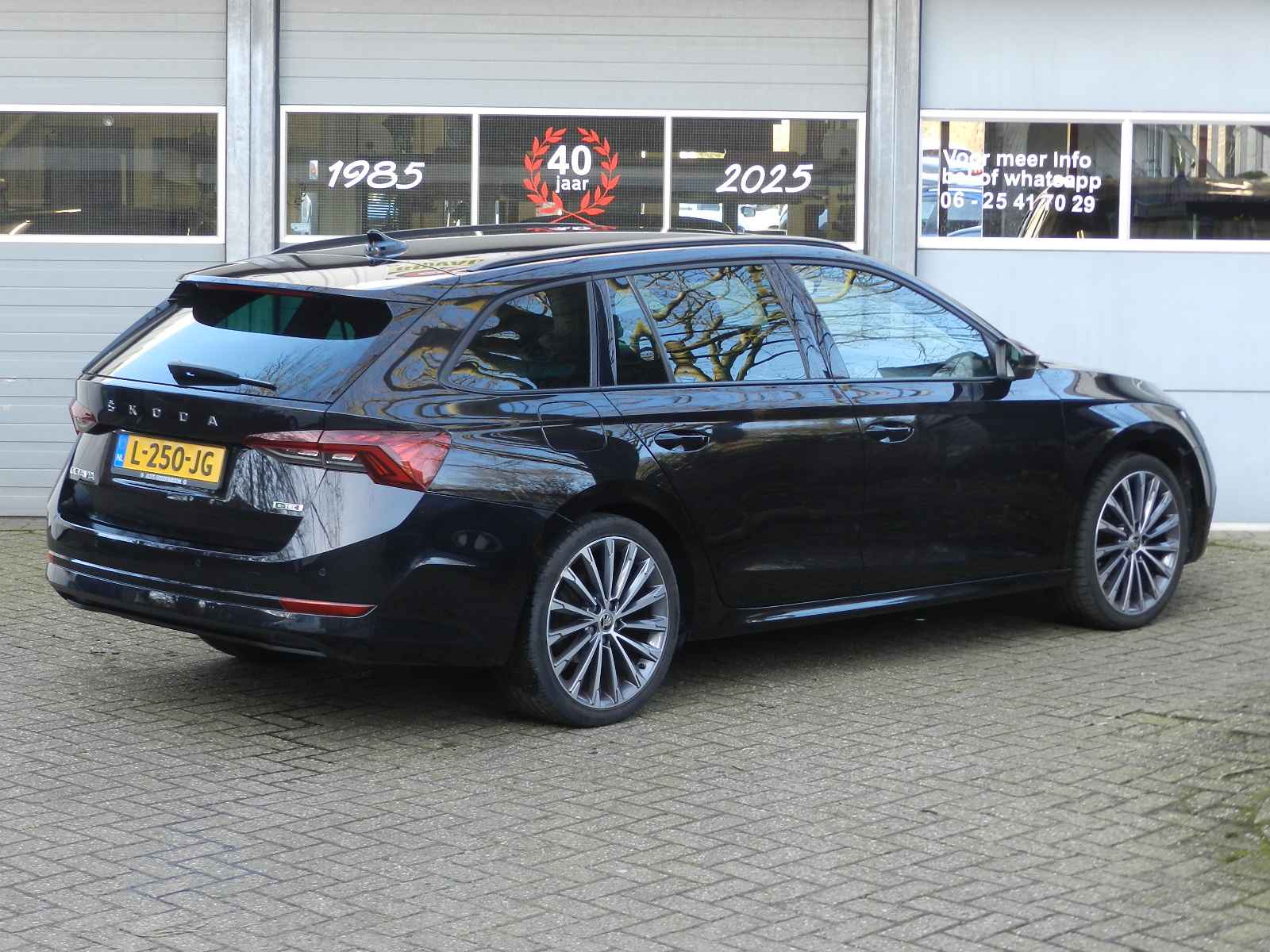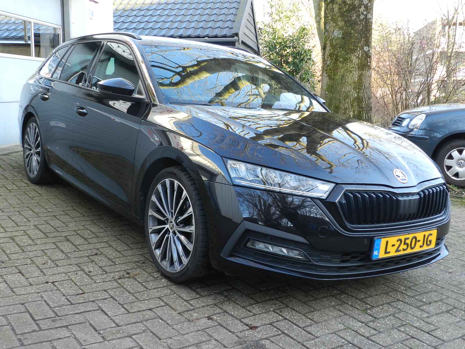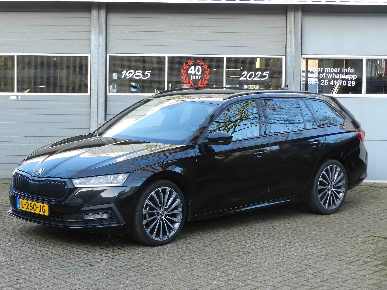 De auto is voorzien van o a, sportieve lederen bekleding met stoel en stuur verwarming, Zwarte hemelbekleding en een origineel Skoda Sport pakket, 19"Lichtmetalen velgen.