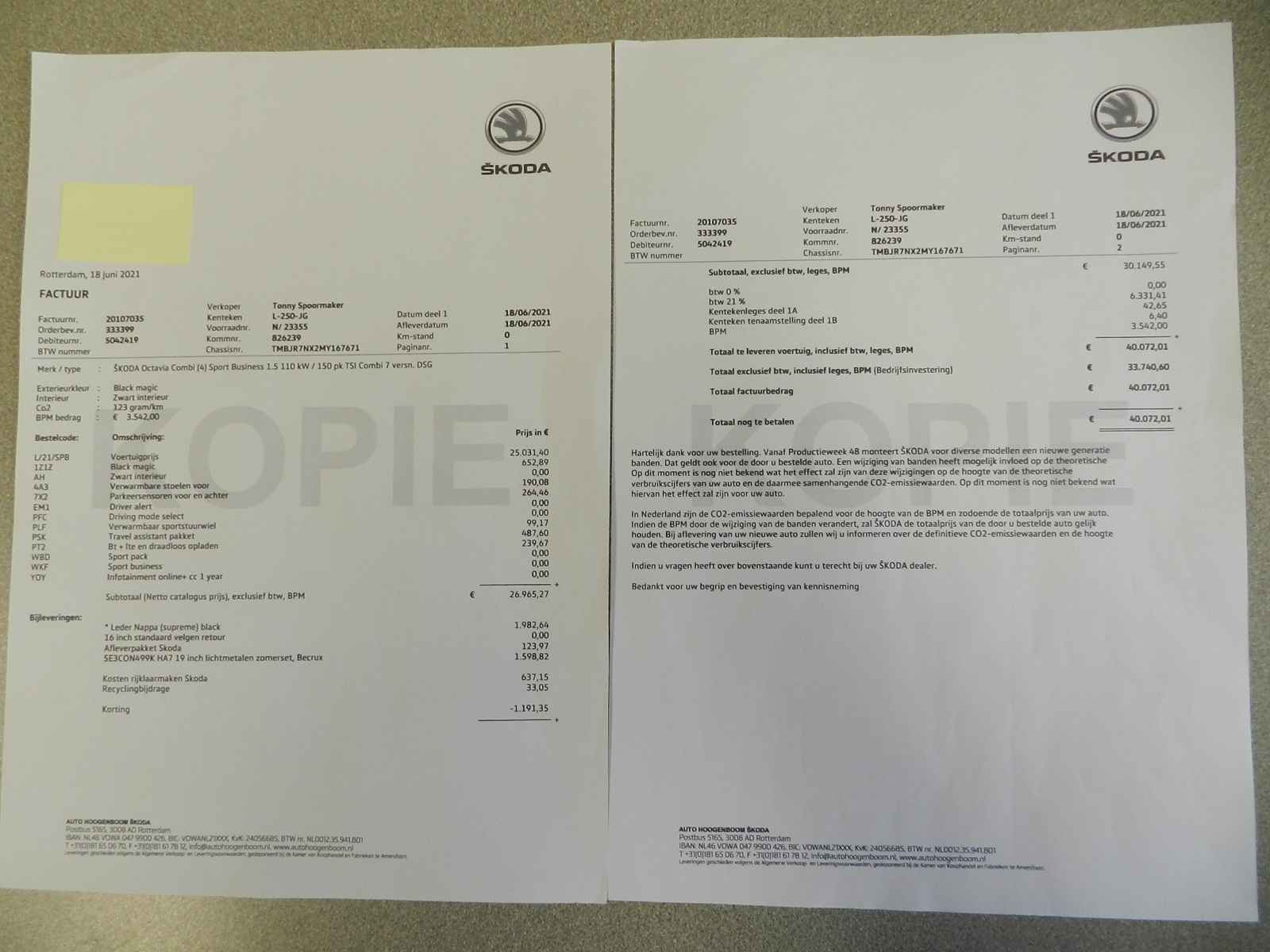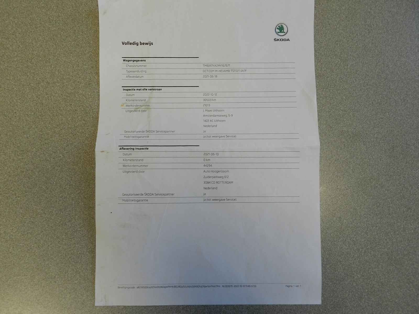 Uiteraard zijn het RDW teller rapport en de onderhoud boekjes, maar ook de facturen hiervan aanwezig.