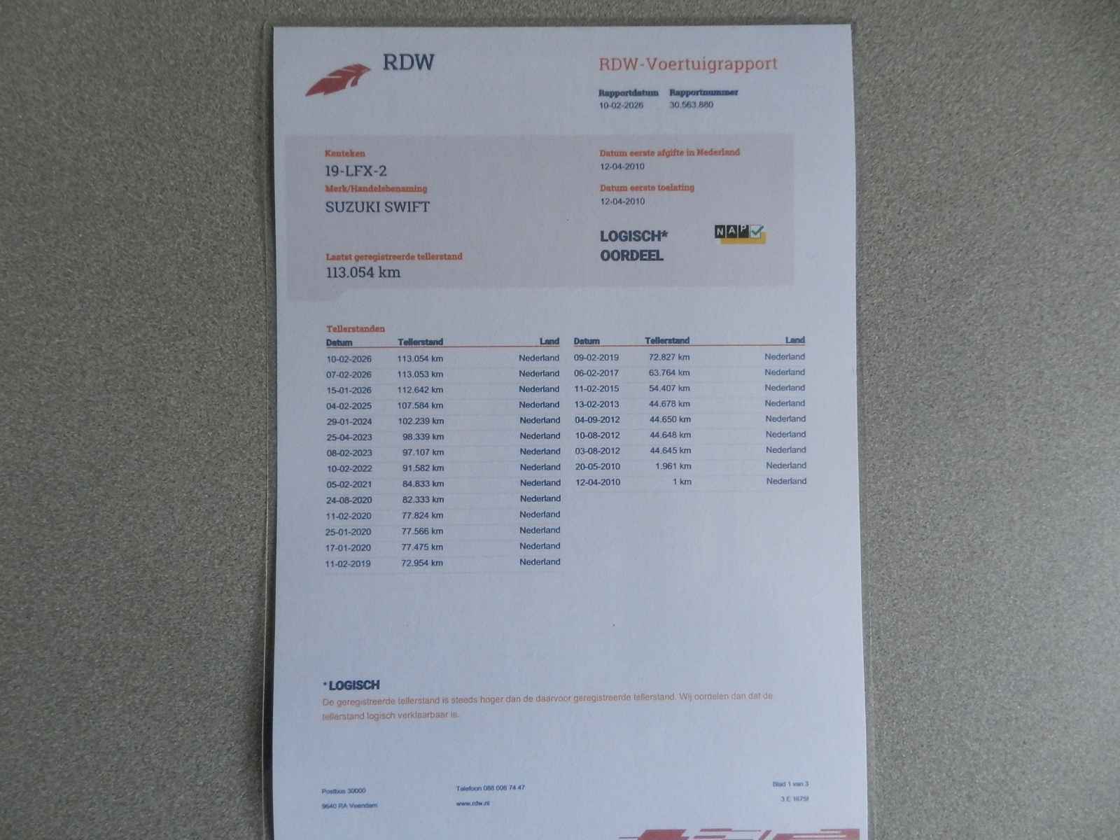 Bij al onze auto`s is een RDW voertuig (teller) rapport (nationale autopas) aanwezig.