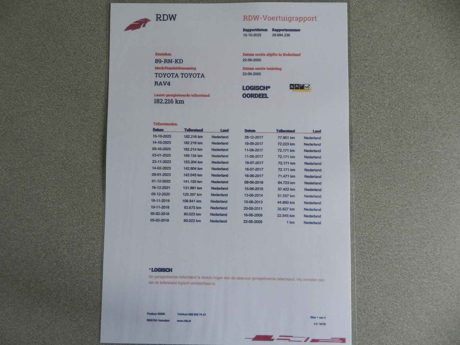 Bij al onze auto`s is een RDW voertuig (teller) rapport (nationale autopas) aanwezig.