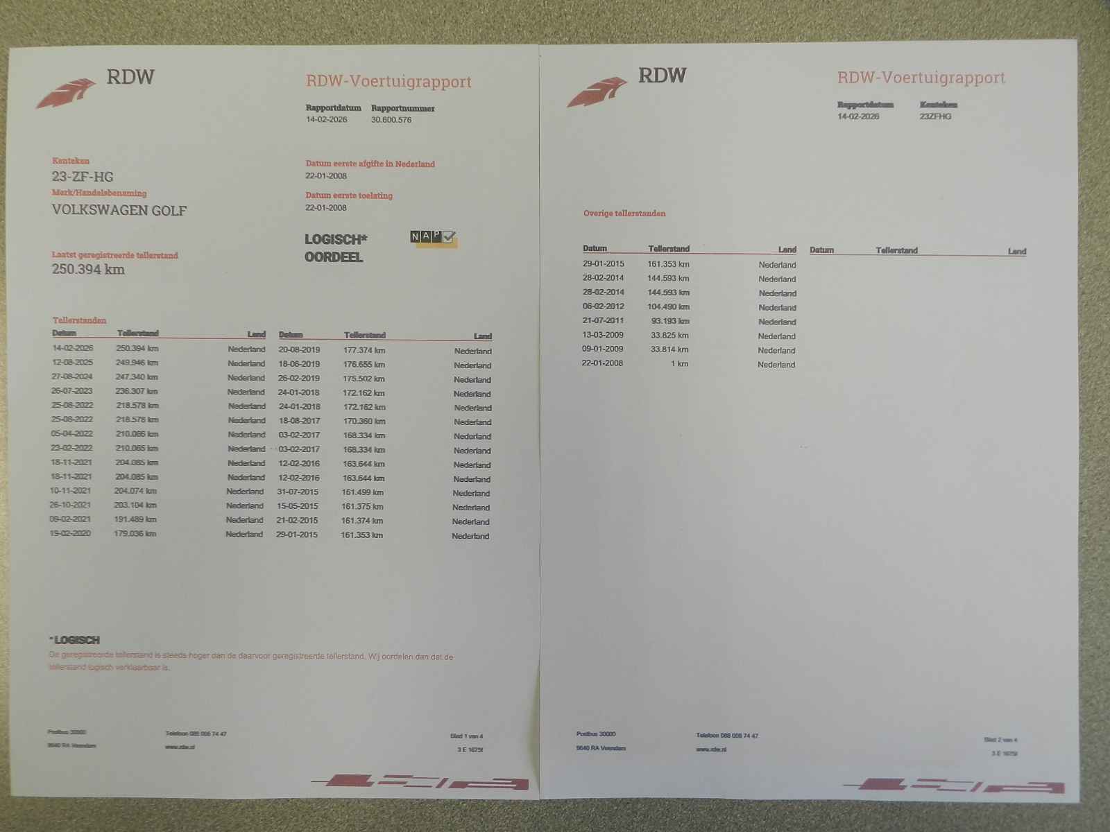 Uiteraard zijn het RDW teller rapport en de boekljes aanwezig.