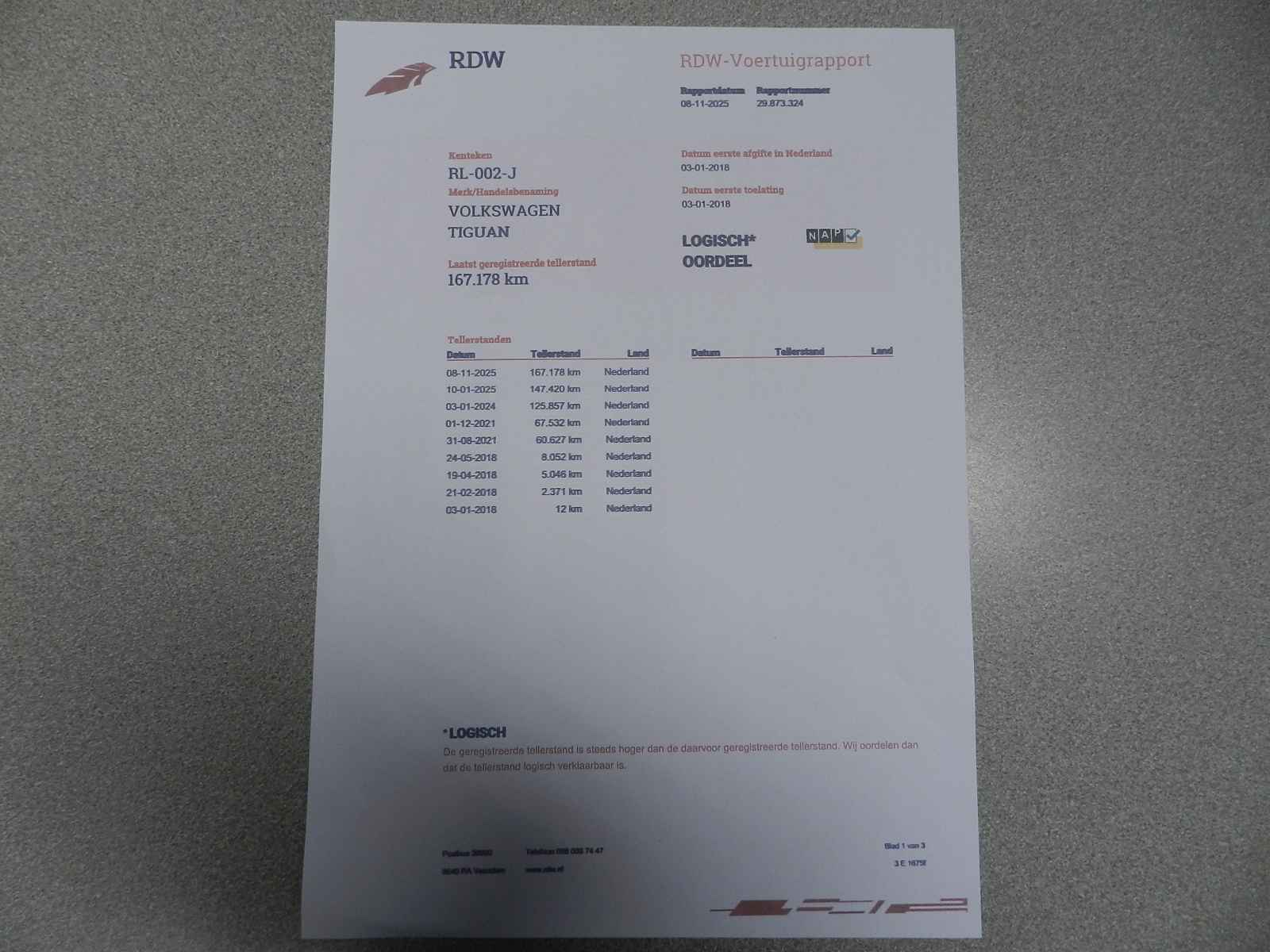 Bij al onze auto`s is een RDW voertuig (teller) rapport (nationale autopas) aanwezig.