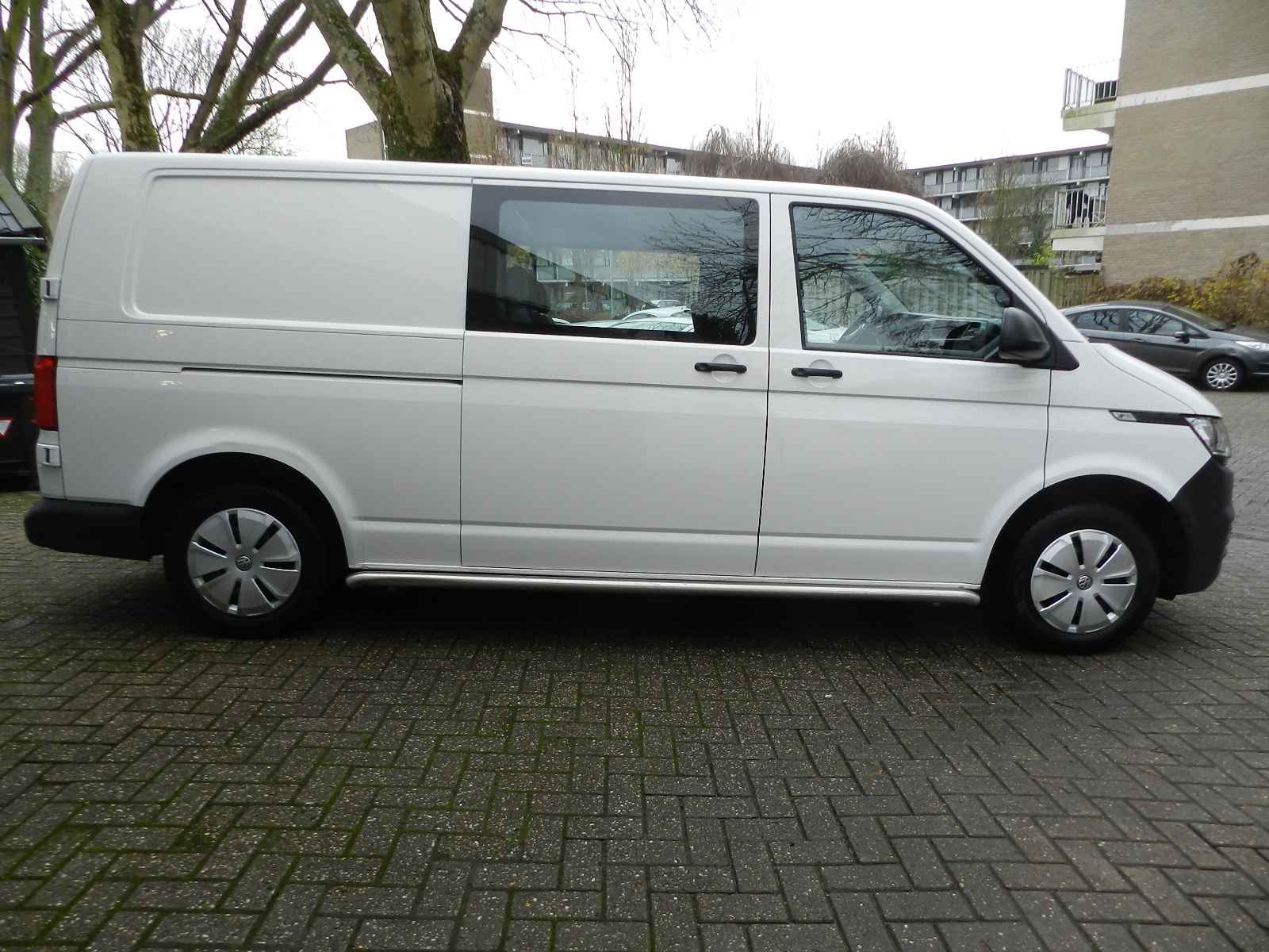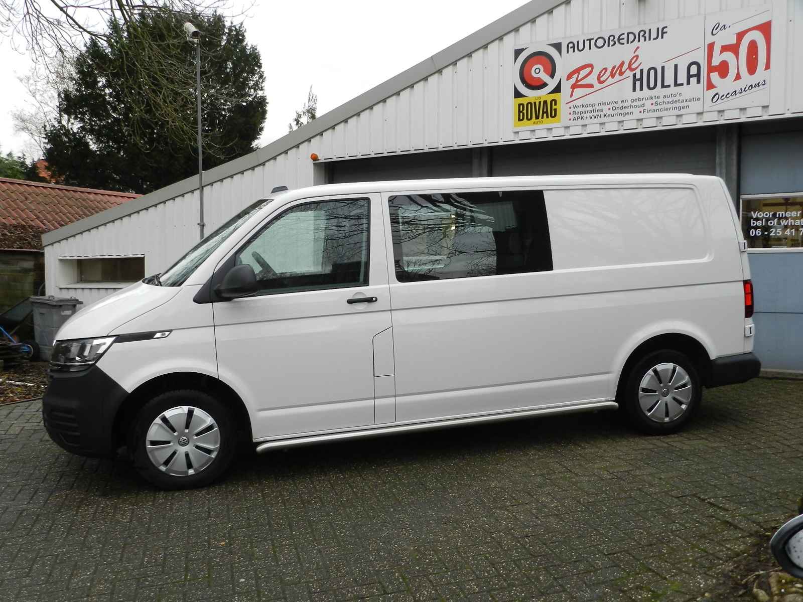 Hele nette VW Transporter Dubbel Cabine 6Persoons met veel extra's o a, Apple en Android Carplay Crouse control, Airco, Centrale slot vergrendeling op afstand, Side bars, Trekhaak, Reserve wiel.